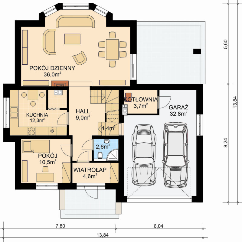- Powierzchnia garażu 32,8 m2