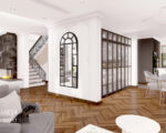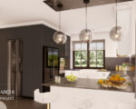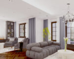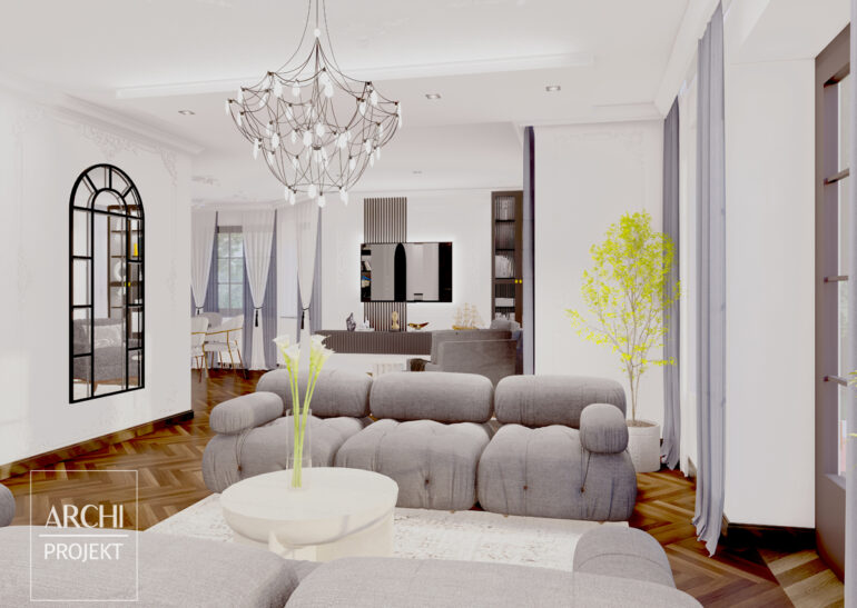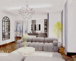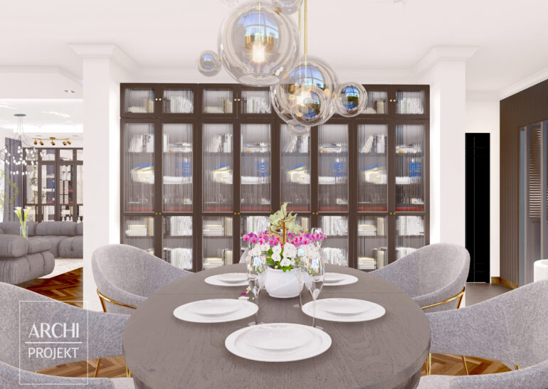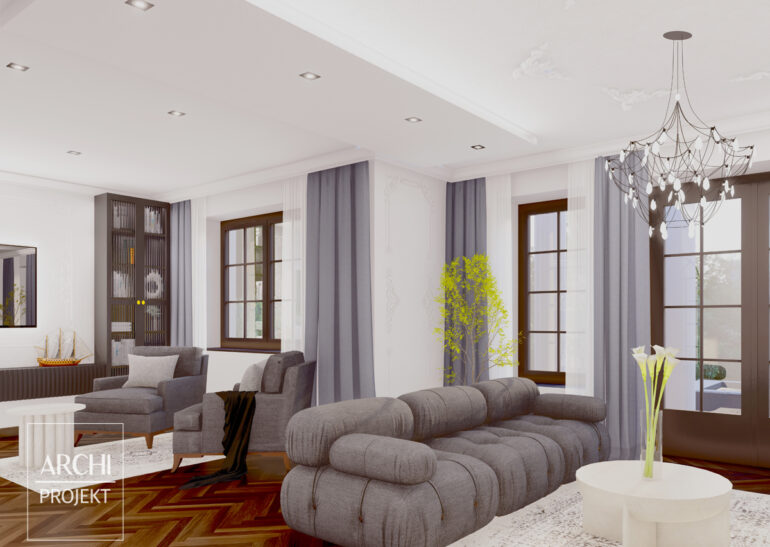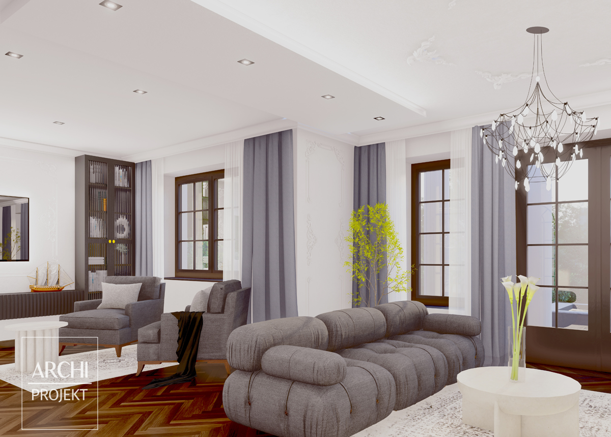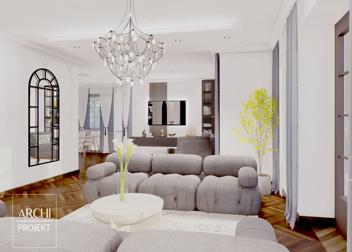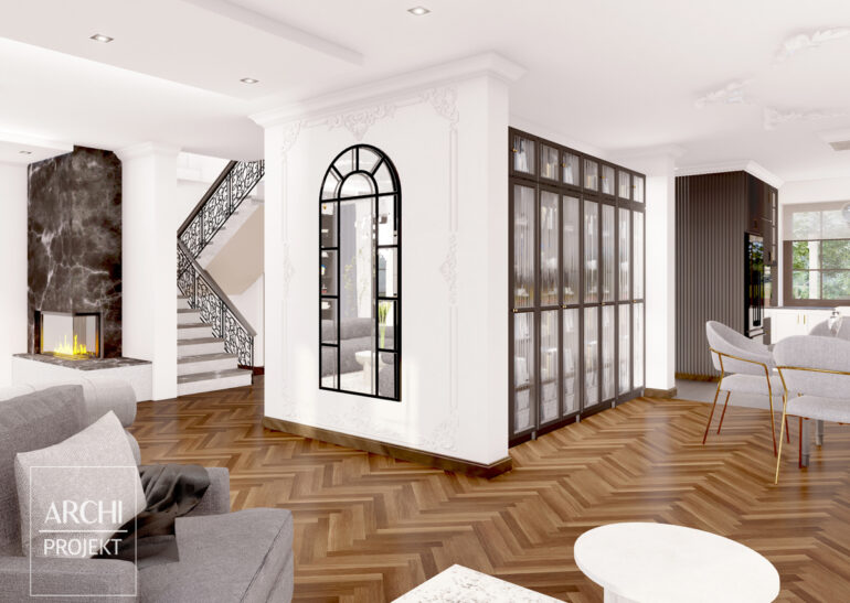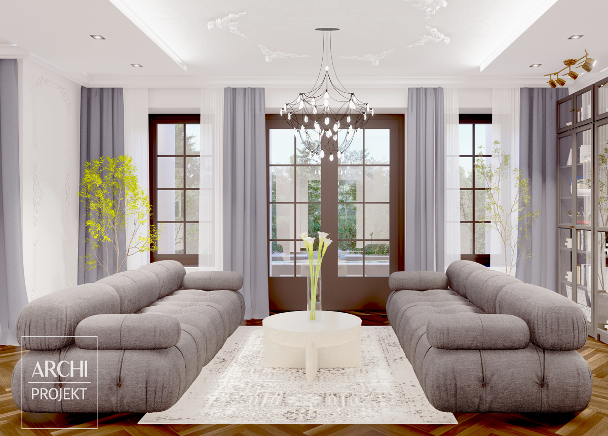 Obszerny, reprezentacyjny dom o klasycznej symetrycznej bryle i pięknym mansardowym dachu, dla 5-8 osobowej rodziny. Wejście na osi domu, pod strzelistym portykiem, do szerokiego przedsionka. Centralnie umieszczony otwarty hall wprowadza nas do wytwornego salonu z narożnym kominkiem, w którym nawet większe przyjęcia nie stanowią problemu. Obok - gabinet. Dla podkreślenia przestronności domu, sąsiadująca z salonem i kuchnią, jadalnia jest otwarta, co umożliwia także zaprezentowanie zalet efektownego układu wnętrz. Od frontu umieszczona jest dodatkowa sypialnia lub pokój gościnny. Obok schodów łazienka z miejscem na piec c.o. Na poddaszu znajdują się: cztery duże sypialnie z garderobami, oraz łazienka z suszarnią. Garaż dobudowany do boku domu. Dostępna wersja bez garażu - APS 022 oraz z piwnicą - APS 022+P. Możliwe zmiany adaptacyjne to między innymi: - rozdzielenie kuchni i jadalni ścianą z przejściem, - dodanie wykusza w pokoju dziennym. Dach w stylu polskim o zróżnicowanych spadkach od 24 do 48 stopni. Zobacz także projekty - APS 48, APS 106.