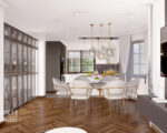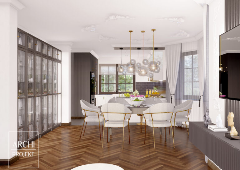 6 pokoi, 2 łazienki, kuchnia, spiżarnia, pokój dzienny z jadalnią, pralnia, suszarnia, garderoby, garaż