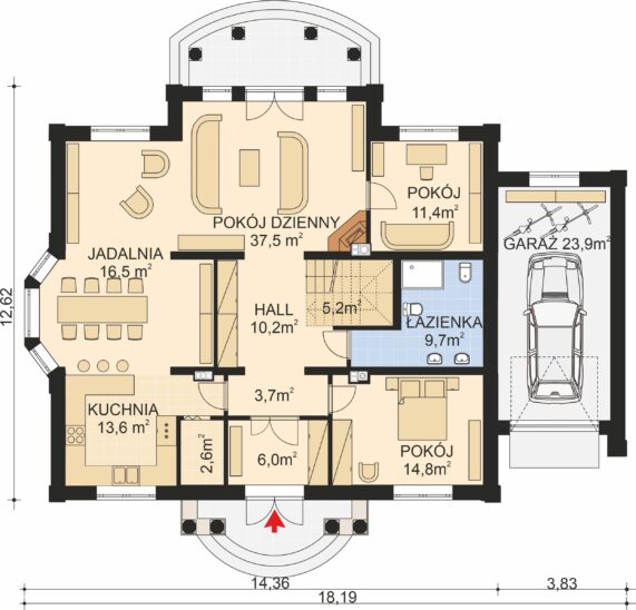 - Minimalne wymiary działki 26,19 m x 20,62 m