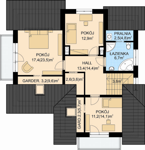 - Powierzchnia dachu 179,5 m2