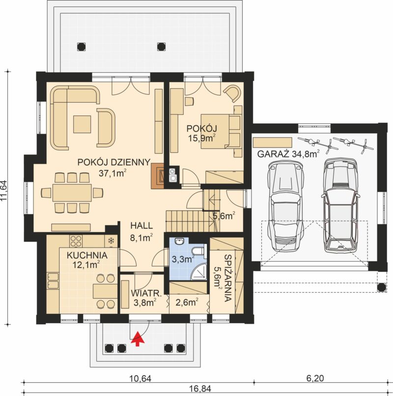 - Powierzchnia garażu 34,8 m2