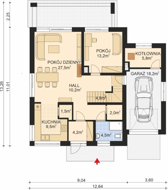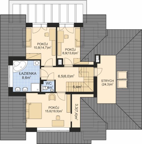 Dom jednorodzinny parterowy z poddaszem użytkowym