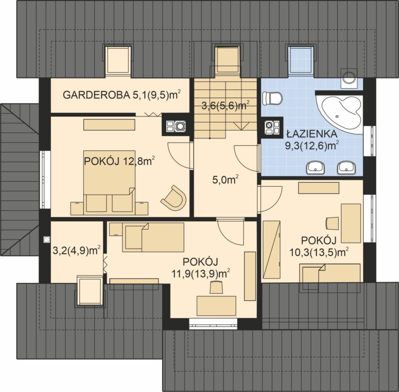 Dom jednorodzinny parterowy z poddaszem użytkowym