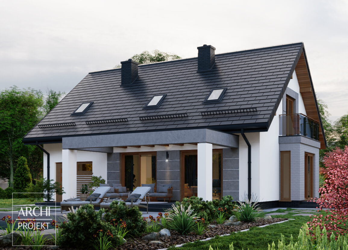 Dom jednorodzinny parterowy z poddaszem użytkowym