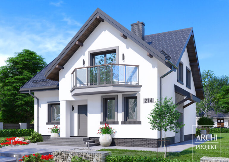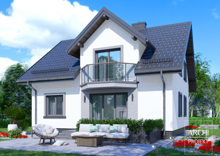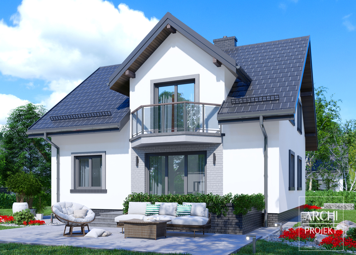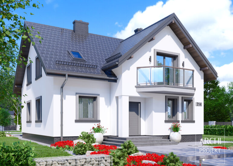 Wygodny dom o przemyślanym układzie funkcjonalnym i nowoczesnej zgrabnej sylwetce. Część dzienna z oddzieloną od salonu kuchnią dla zwolenników klasycznego podziału pomieszczeń, ale jest możliwe połączenie pomieszczeń. Dodatkowym atutem może być sypialnia na parterze. Na poddaszu duże foremne sypialnie z wydzieloną pralnio-suszarnią, wszystkie pomieszczenia jasne i wygodne. Zobacz także projekty: APS 108, APS 188, APS 191.