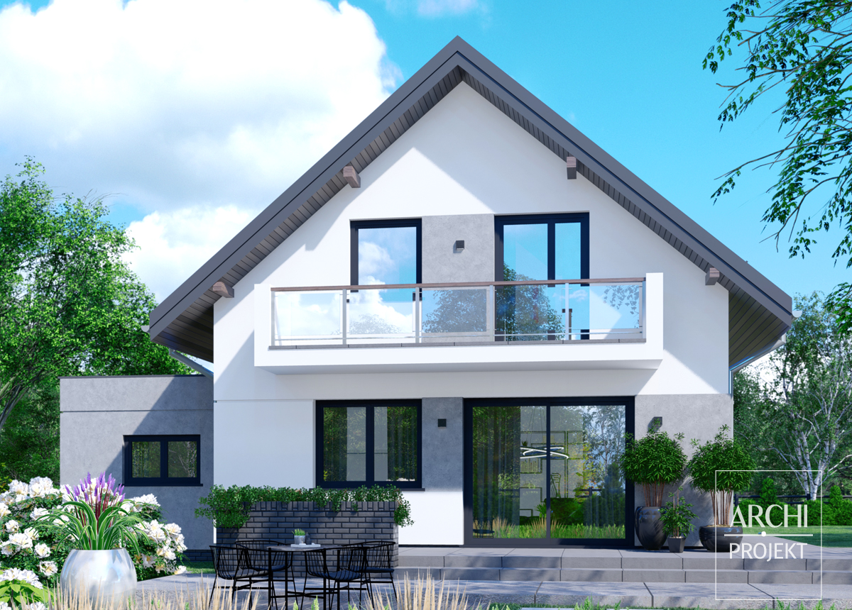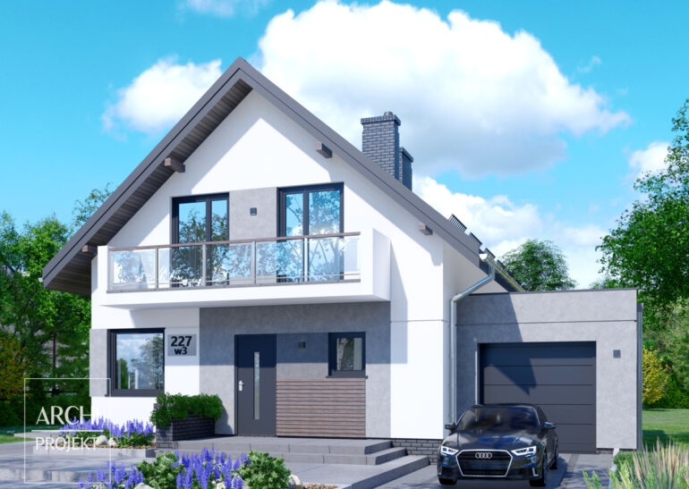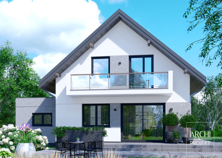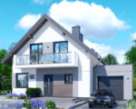 Nowoczesny, funkcjonalny dom o zwartej, prostej bryle, z dołączonym garażem i funkcjonalnym wnętrzem, dla 4-5 osobowej rodziny. Zadaszone wejście jest niezwykle praktyczne w naszym klimacie. Strefa dzienna, usytuowana w głębi domu zawiera połączone powierzchnie kuchni, jadalni i salonu. Szerokie drzwi tarasowe prowadzą na duży taras, który staje się przedłużeniem salonu w ciepłej porze roku. Na parterze także: pokój(gabinet) – od frontu, wc, kotłownia przy wejściu do domu. Na poddaszu znajdują się trzy wygodne sypialnie zapewniające komfort domownikom i duża łazienka. Zobacz także projekty: APS 71, APS 124, APS 126.