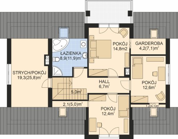 Dom jednorodzinny parterowy z poddaszem użytkowym