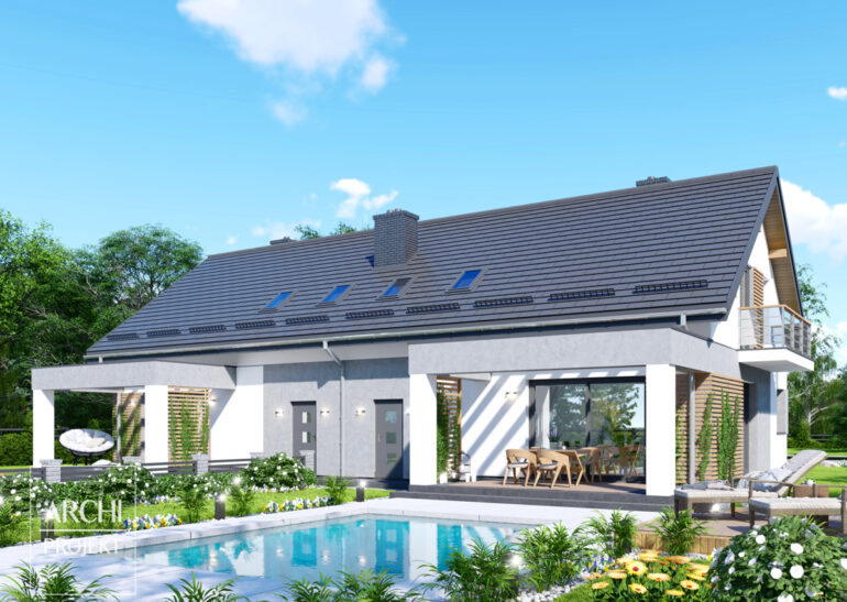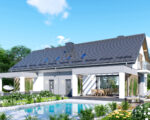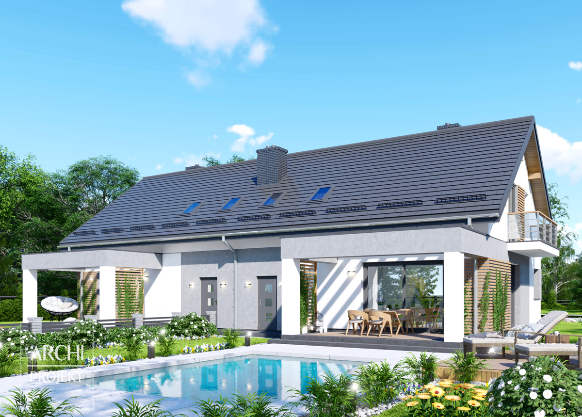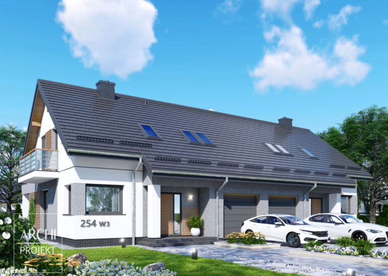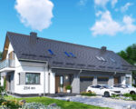 Zgrabny, wygodny dom dwulokalowy (składający się z dwóch bliźniaczych segmentów), przeznaczony dla 4-5 osobowej rodziny. Oba segmenty połączone garażami. Zwarta bryła domu zawiera na parterze część dzienną z wygodną kuchnią i zgrabnym salonem. Taras na przedłużeniu salonu jest osłonięty balkonem. Schody połączone z przestrzenią salonu prowadzą na poddasze, które zawiera trzy wyjątkowo przestronne sypialnie z balkonami i dużą łazienkę. Dzięki zwartej, ekonomicznej konstrukcji budynek jest łatwy i niedrogi w realizacji. . Cena projektu jest ceną obu segmentów łącznie. Zobacz także: APS 209, APS 238.