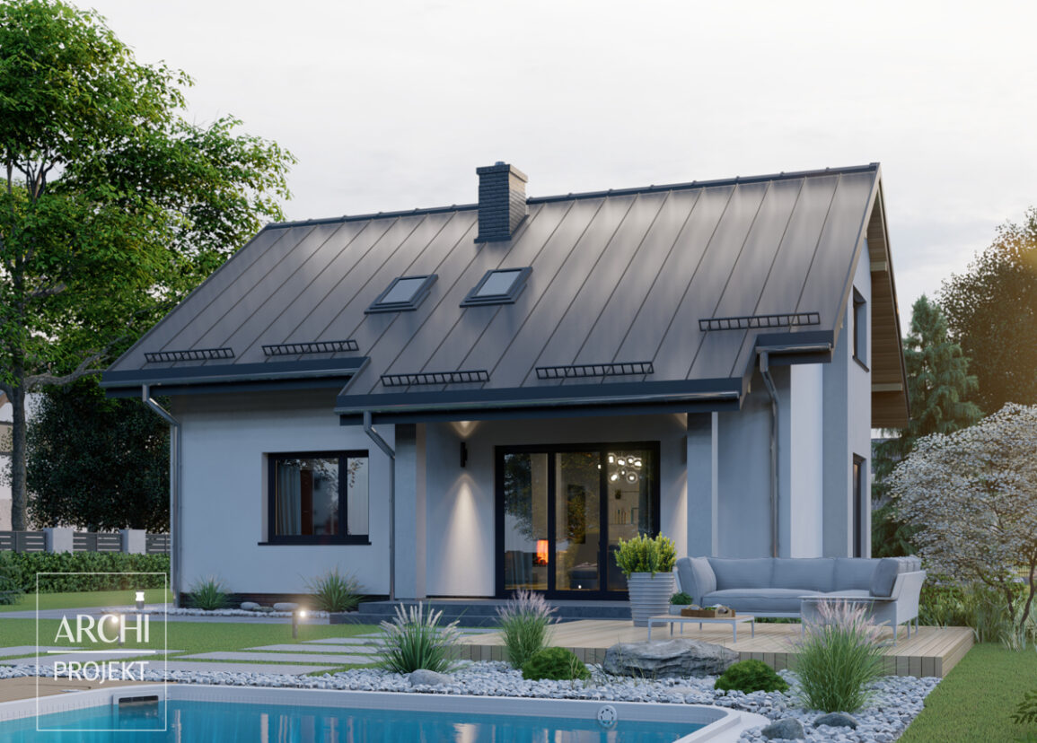 Dom jednorodzinny parterowy z poddaszem użytkowym