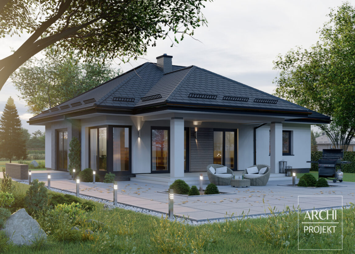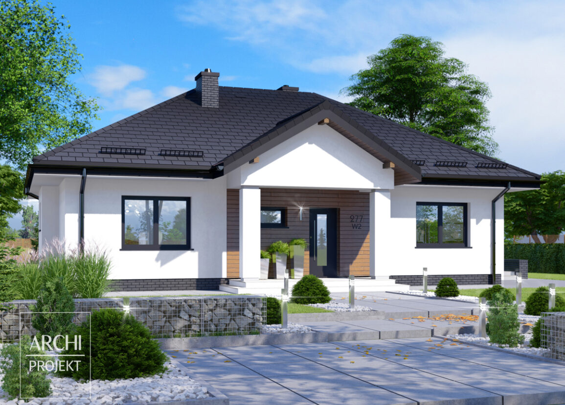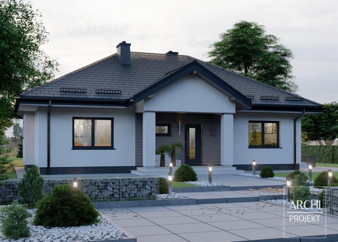 APS 277 wariant 2 to piękny dom parterowy o interesującej bryle i dobrze zaprojektowanym wnętrzu.