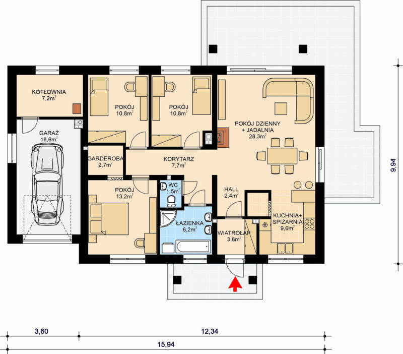 - Powierzchnia użytkowa domu 96,8 m2