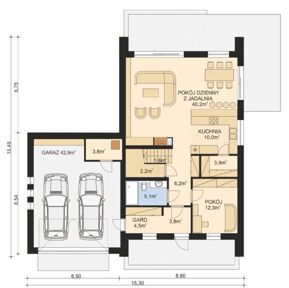 - Minimalne wymiary działki 23,30 m x 23,49 m