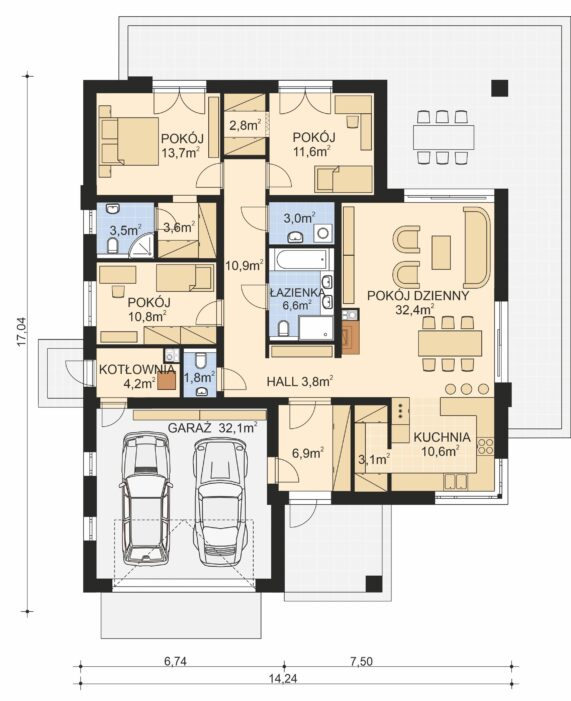 - Powierzchnia garażu 32,1 m2