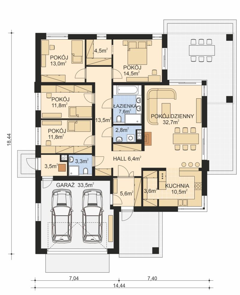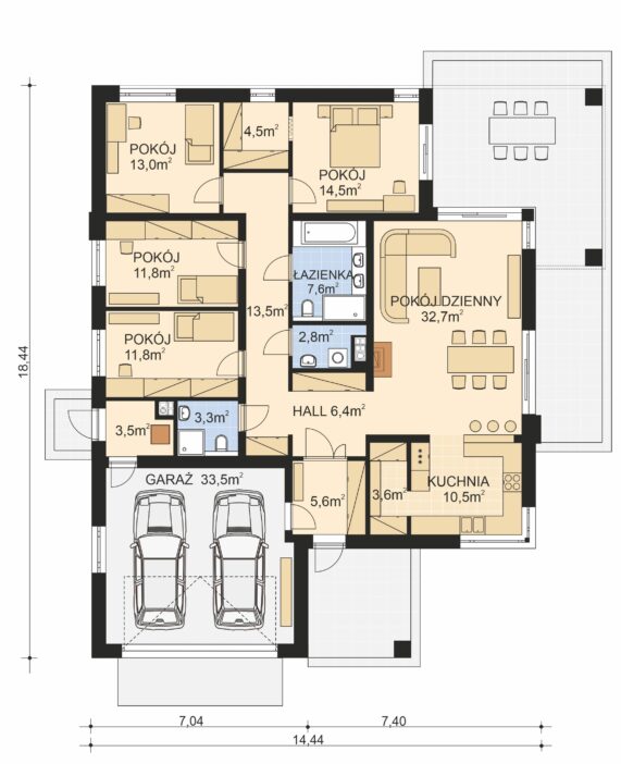- Powierzchnia garażu 33,5 m2